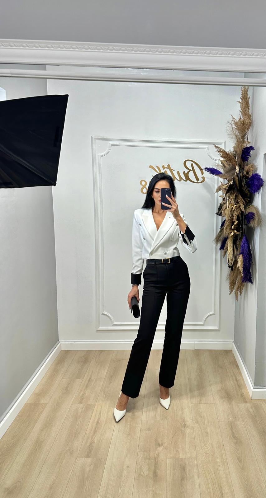 Sacou alb mansete